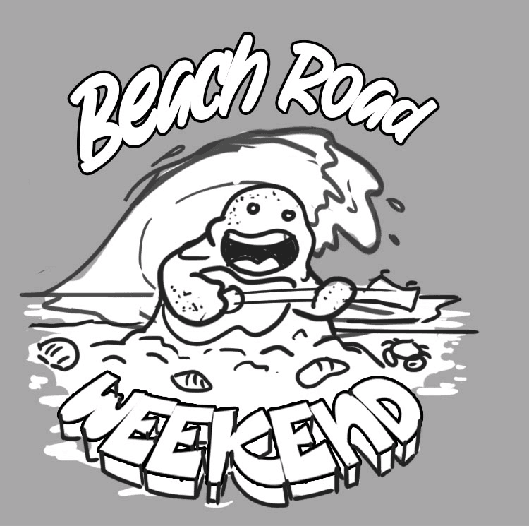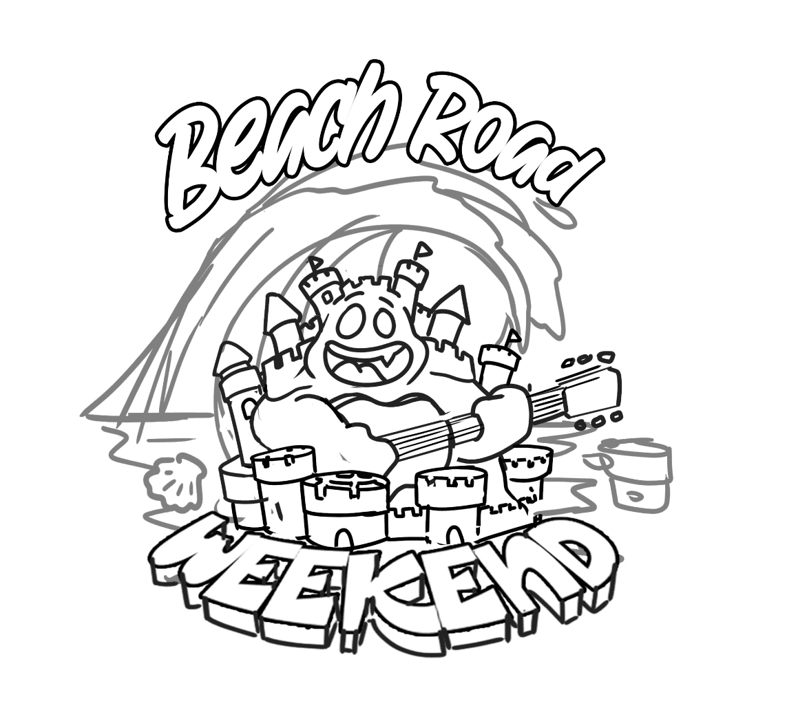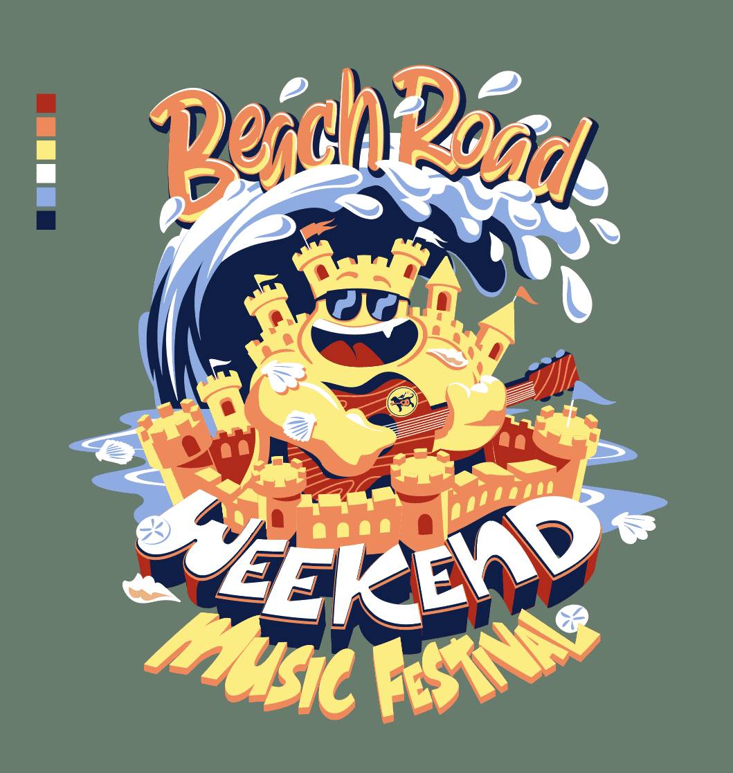 Beach Road Weekend is an annual music festival that is held in Martha's Vineyard, Massachusetts. It has hosted various musical artists, with previous lineups including Mumford & Sons, Bon Iver, and Leon Bridges.  They wanted to bring some playful character designs to their T-shirt and hat line, and came to me with a hilarious concept, 'a sandcastle playing a guitar'. This was an incredibly fun project to work on and the final T-shirts were a hit!